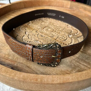 BERGE Croc Embossed Belt Leather Brown Embellished Buckle, Size Small