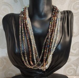 BERGERE Vintage 70's Rare Glass Beads Aurora Borealis Multistrand Necklace