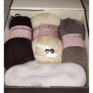 BERGERE de France Kit Creatif "Capuchin le Malin" Complete kit. Yarn makes hat, the bootees and the toy. Buttons, polyester stuffing and instructions.