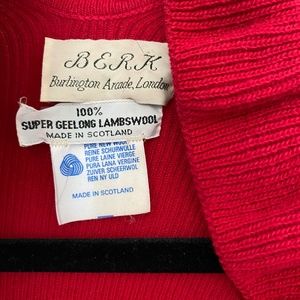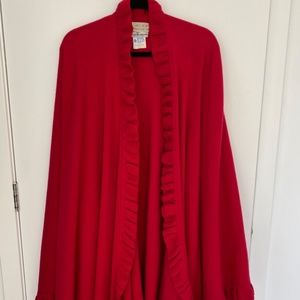 BERK Burlington Arcade, London red cape with ruffle trim. Gorgeous deep red color. Perfect for transitional weather. 100% Lambswool made in Scotland. Excellent condition