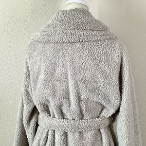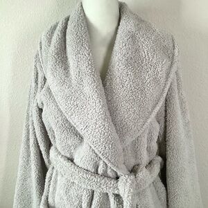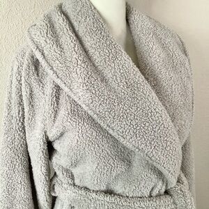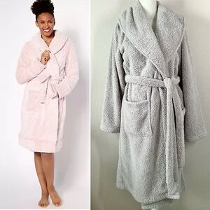 BERKSHIRE Sherpa Fleece Robe Bathrobe Pockets Tie Waist Loungewear Comfy Gray M