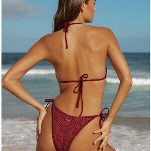 BERLOOK Burgundy Crochet Halter Triangle TOP AND Burgundy Crochet Tie Bottom 07
