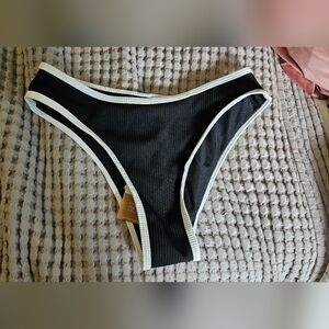 BERLOOK Contrast Trim Low Waisted Bikini Bottom In Black/white. Size S NWT