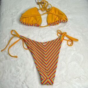 BERLOOK Plush Texture Stripe Halter Bikini Top & Plush Texture Stripe Tie Bottom