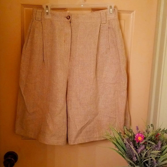 BERMUDA SHORT...GOOD CONDITION....54% LINEN...46%COTTON... LITTLE STAIN IN FRONT AS SHOWN IN PICTURE...POCKETS ON SIDE....LITTLE WRINKLES FOR BEING IN CONTAINER... WAIST 29", LENGHT 21 1/2 HIP 20" ALL AROUND 40" BIN #8.