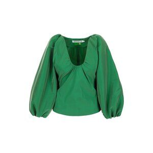BERNADETTE's Jos top makes you long for summer. Cut from crisp taffeta, Jos features long poofy sleeves and a deep V-neck with intricate detailing, elegantly showcasing the cleavage area. Jos highlights the waist elegantly, making this top the ultimate summer must-have to dress up any outfit!