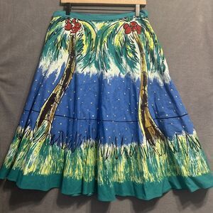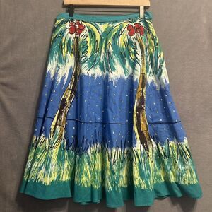 BERNADO Skirt Size 12 Graphic Print Beach Scene Coconuts Sequins Resort Vacation Artsy