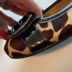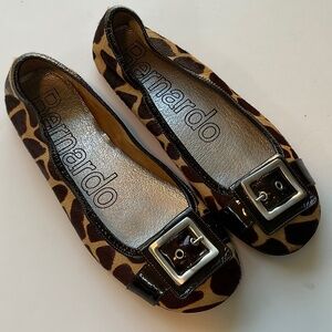 BERNARDO Ballet Buckle Calf Hair Animal Print Flats Size 9