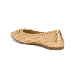 BERNARDO Gold Made In Spain Leather Gwynn Woven Ballerina Fats