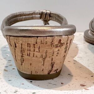 BERNARDO Miami Leather Platinum Metallic Tong Cork Wedge Sandals