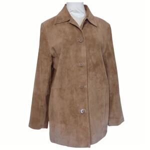 BERNARDO Vintage Tan Suede Coat Size L Blazer Style Jacket Academia Fall Winter