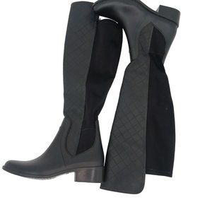 BERNARDO WOMENS EVE QUILTED BLACK RUBBER RAIN BOOTS SIZE 8