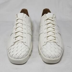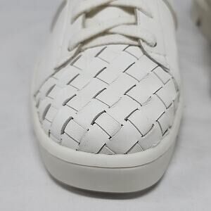 HELLO , THESE AWESOME🔥BERNARD🔥 STYLE DAKOTA ARE NEW ,WITH NO FLAWS. THE MATERIAL IS WOVEN LEATHER ON THE VAMP AND SIDES ,COLORWAY IS WHITE ON WHITE WITH NICE RUGGED CHUNKY BOTTOM RUBBER SOLES. THE INSIDE INSOLES ARE HAVE LEATHER LINNING. MEMORY FOAM REALLY SOFT.THE SNEAKERS LIKE I SAID COME IN A SLEEK WHITE.NICE DATE CASUAL SNEAKERS.