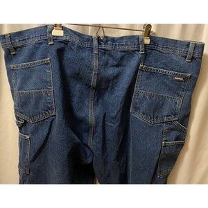 BERNE Carpenter Jean Men 52X30 Cotton Flat Front Dark Wash Straight Cut