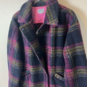 BERNIE MULTICOLORED PLAID WOOL BLEND SHACKET JACKET