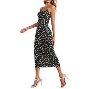 BEROZA BLACK & CREAM FLORAL BODYCON MIDI DRESS SZ.M EUC. WORN ONLY 1X