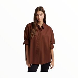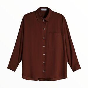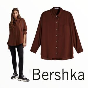 BERSHKA | Brown | Oversize LONG SLEEVE SHIRT with pocket