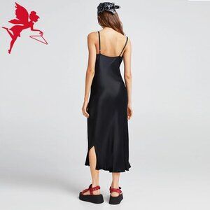 BERSHKA Cowl Neck Satin Midi Slip Dress