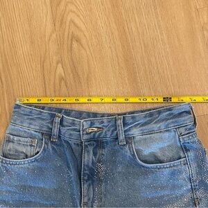 BERSHKA Glitter Rhinestone jeans size 2. High rise. Length from top to bottom is 42 inches. Inseam 30 inches. Waist is 13.5-14 inches. Super cute for going out!!! Pls note some rhinestones fall off