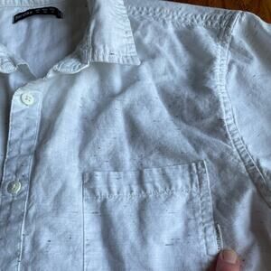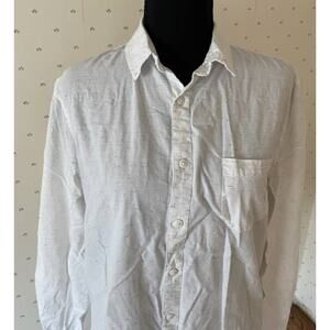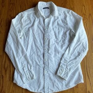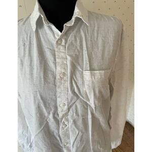 White Cotton shirt with a black pattern. No stains or rips. Worn a handful of times. Great for any season as it can be worn in the Summer or Winter with more layers. Can be tucked it or worn with a belt. A staple in every closet.