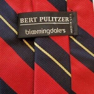 BERT PULITZER BLOOMINDALE'S RED BLUE YELLOW SILK STRIPE TIE 3 7/8"