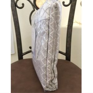 The perfect layer on cool nights, this thick and generous throw offers the luxurious contrast of matte woven linen/cotton trimmed with a 2"; light sand color border.