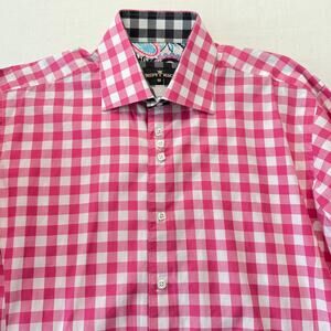 BERTIGO Pepe 52 Cotton Designer Shirt Men's Size XL Pink White Check NWOT