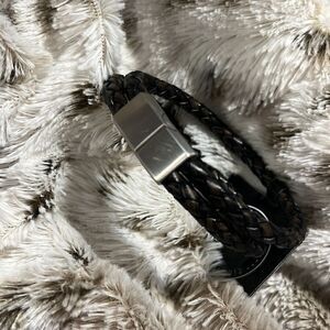 Double strands of braided leather stack up to a fresh look in this handsome bracelet from Bespoke.