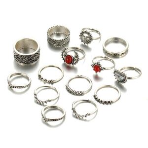 **BESS* 14-Pc Vintage Stone Fashion Ring Set