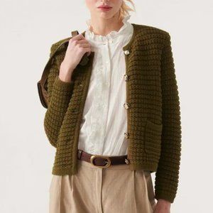 BEST Ba&sh Gaspard French Cardigan Small Olive Green Military