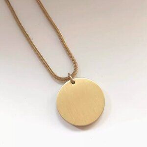 Detailed with a chunky disc pendant in a brushed finish, this necklace is made from polished brass with a braided chain.