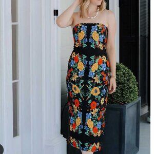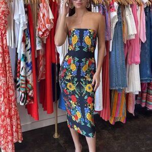 BEST Cara Cara Leah Midi Dress Sz2/6 Flora Scarf Black Red Cocktail Party