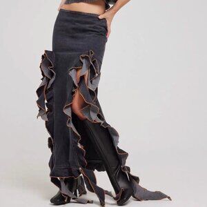BEST Lioness Rendezvous Faded Denim Maxi Skirt Washed Black XSmall/Small/Medium