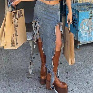 We're obsessed with this denim maxi skirt by Lioness - look at that fringe trim! Pair with the matching top and throw on some heels for your next event.