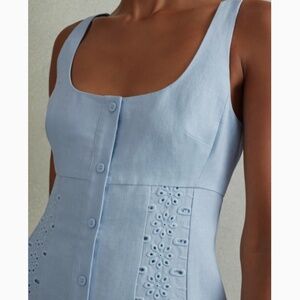 BEST REISS Clarice Linen Broderie Midi Dress Regular Size Light Blue Spring