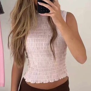 BEST Reformation Adri Tank Top - Hummingbird Stripe Pink Ivory Stretchy Soft