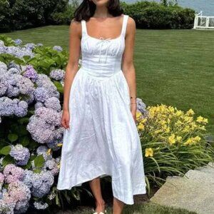 BEST Reformation Balia Linen Midi Dress Sz0 White Linen Bow Sleeveless Classic