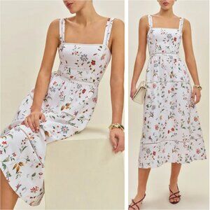 BEST Reformation Everett Linen Midi Dress - Corsini Ivory Floral Wedding Casual