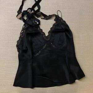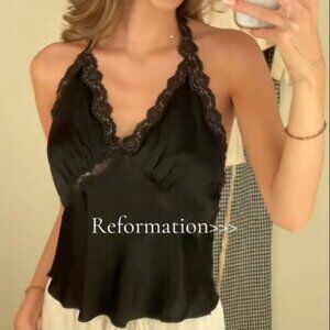 BEST Reformation Monica Silk Top Medium Black Noir Halter Lace Lux French