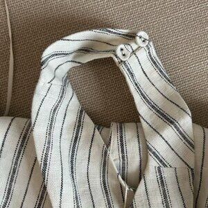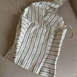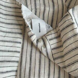 BEST Reformation Tate Linen Top Sz2 Elsie Stripe Black Cream Halter Casual