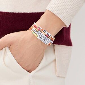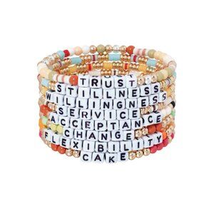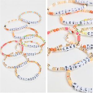 Holiday grab bag with set of eight multicolor bracelet bunch and "Your Focus This Year is On" description card, and our new grab bag pouch.