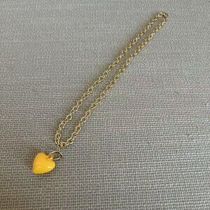 Gold tone brass chain necklace & removable enamel mini puffy heart pendant