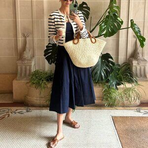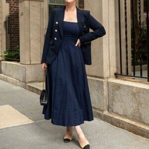 BEST STAUD Wells Midi Dress Sz6/8/10 Navy Blue Classic Cotton Party Wedding
