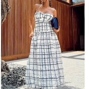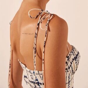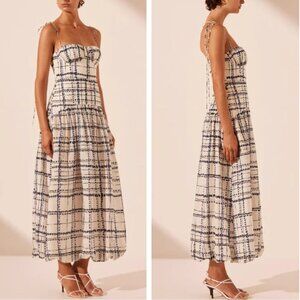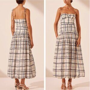 BEST Shona Joy Niko Gathered Bubble Midi Dress Linen Vacation Causal Cocktail