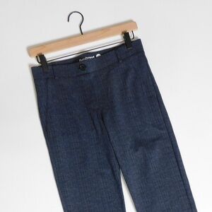 Defined elastic/stretchy waistband with belt loops ~ Faux button closure & faux fly on the front ~ Two faux pockets on the front under the waist … two functional pockets on the backside ~ Full-length straight legs ~ Pull-On styling … no closures ~ Wrinkle resistant ponte knit fabric with great stretch ~ Two tone gray-blue color with an abstract crosshatch geometric print