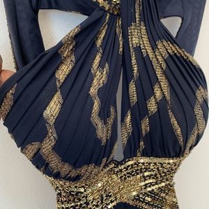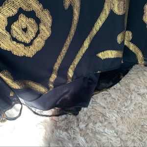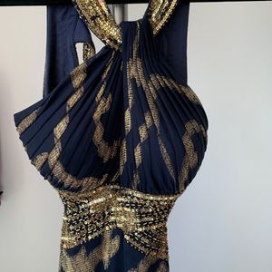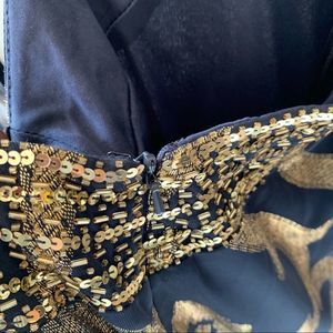 BETSEY & ADAM Open Back Cut Out Dress Blue Gold Size 2