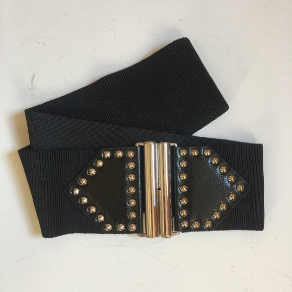 BETSEY JOHNSON 3" Black Stud Wide Stretch Belt M/L