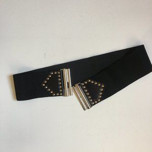 BETSEY JOHNSON 3" Black Stud Wide Stretch Belt M/L. Silver-toned clasp. Elastic waist. Excellent Used Condition. Man-made materials.