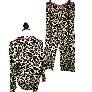 BETSEY JOHNSON BETSYVILLE Women's XL Leopard Print Pink Trim 2 Piece Pajama Set