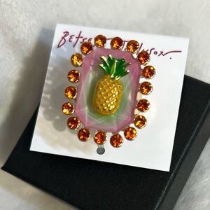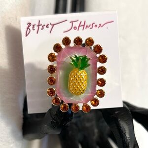 🍍BETSEY JOHNSON Backyard Pineapple Crystal Frame Cocktail Stretch Ring🍍NWT